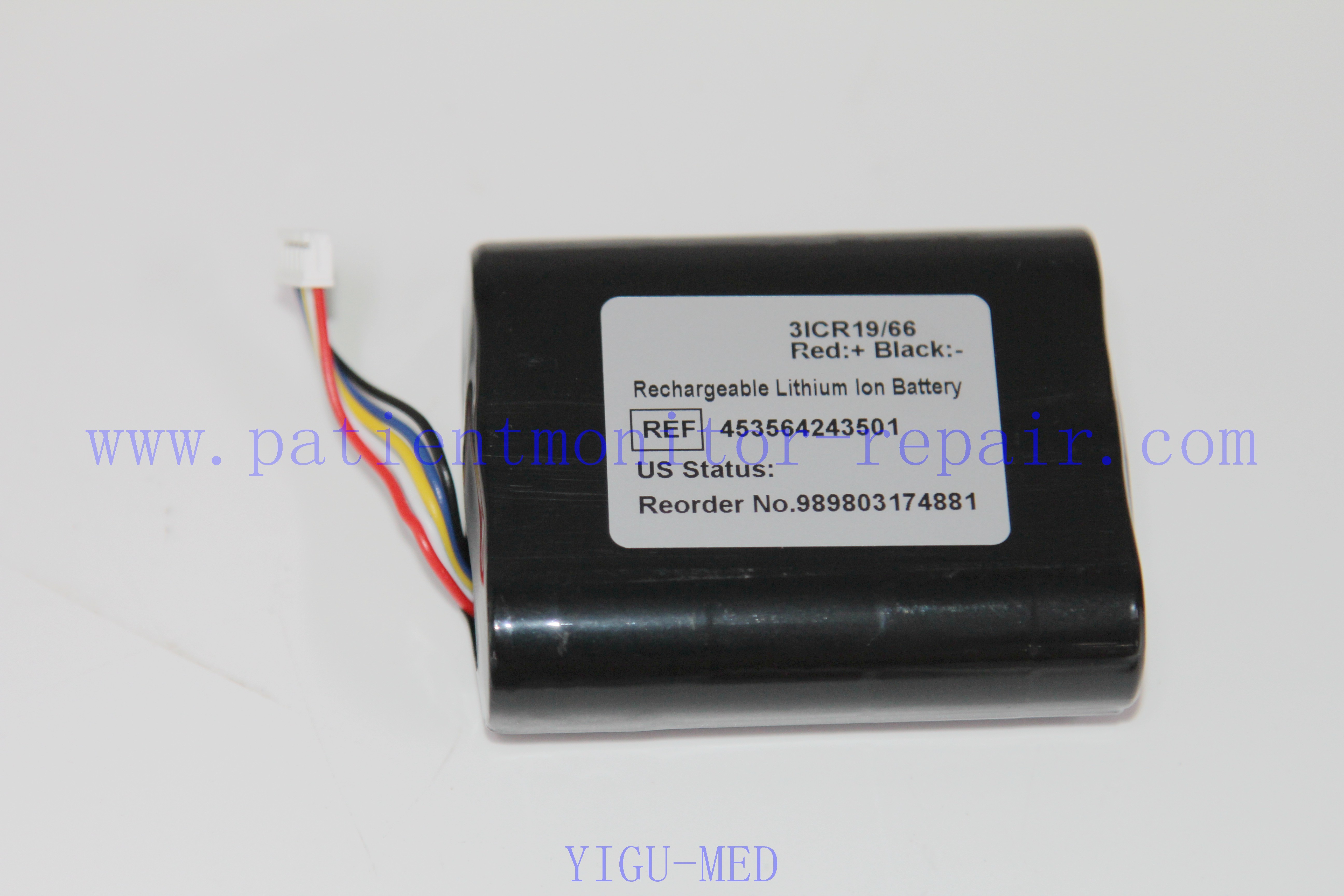 Baterai berkinerja tinggi yang dapat diisi ulang yang kompatibel dengan peralatan medis HR MRX VM1. Baterai ini dirancang untuk memenuhi persyaratan yang ketat dari perangkat pemantauan medis.